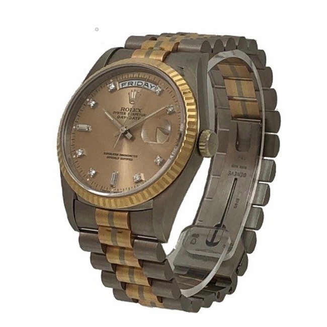 ここでもやはりロレックス!TOP4に引き続きまたもやデイデイトでございます。現行モデルでホワイトゴールドを全面に使用した最高級のお品です。