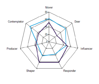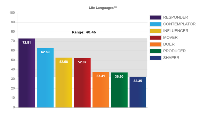 Life Languagesでは、このようなコミュニケーション傾向・ニーズ(コミュニケーションIQ)によって、行動特性が強い『ムーバー』『ドゥーワー』、感情特性が強い『インフルエンサー』『レスポンダー』、思考特性が強い『シェイパー』 『プロデューサー』 『コンテンプレイター』という7つのタイプ(言語)に分けています。”この世界には、70億人ではなく、7人しか存在しない”として、個人の中にそれぞれの要素をどれくらい持っているかを、数値とグラフで可視化しました。