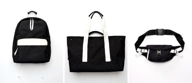 ミニマルな見た目そのままに快適さをとことん追求。外側のポケットの付け根にはZIPで開閉する隠しポケットを配置し、すぐに使いたいボトル類や財布を素早く取り出すことが可能です。内装は緩衝材を前後と底に挟んだPCスペースの他、 iPad、書類収納スペースやペン差しポケット、ボトル及び折り畳み傘を収納できるポケットに、チケットや常備薬を収納するメッシュポケットを配備。バッグ内での荷物の散乱を防ぎ、デイリーから小旅行まで対応でき る収納豊かな多目的仕様になっています。テープとインナーポケットのメッシュは白の配色で、白と黒のコントラストがデザインポイント。