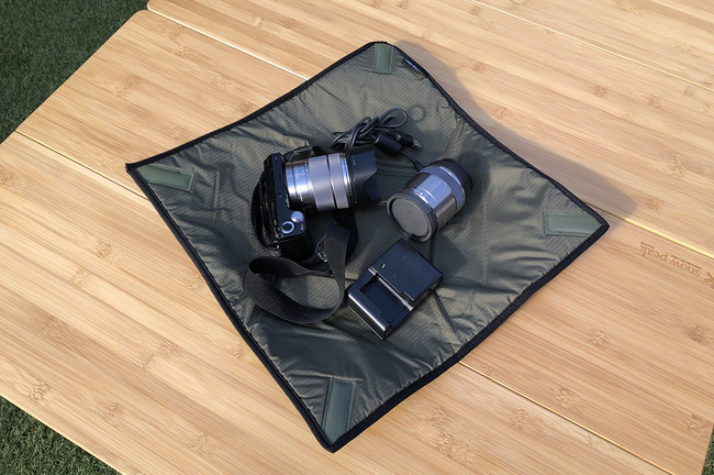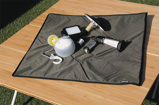バラバラになりがちなキャンプギアも包むだけでまとめられ、 片付けも楽々。