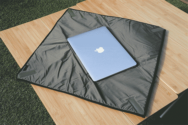 保護したいものや、まとめて収納したいものをギアラップの中央に置き、四隅の面ファスナーを中央で合わせて、包みます。アウトドアシーン、ワーケーションやリモートワーク、様々なシーンで活躍します。