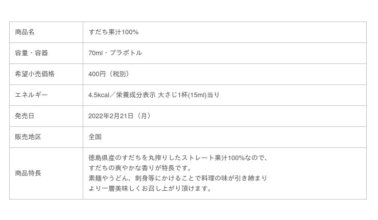 この商品は、手摘みした徳島県産すだちを使用し、皮ごと丸搾りしたストレート果汁100%のすだち果汁です。丸搾りならではのまろやかな酸味や、爽やかな香りが特長で、うどんやそうめん、刺身等にかけることで料理の味が引き締まり、より一層美味しくお召し上がり頂けます。