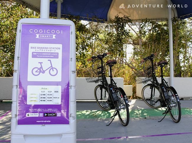 アドベンチャーワールド(和歌山県⽩浜町)は、コギコギ株式会社(東京都渋谷区、代表取締役:中島 幹彰 様、以下:コギコギ)とダイセン産業株式会社(大阪府大阪市、代表取締役:淡路 満 様、以下:ダイセン産業)が提供する電動アシスト自転車のシェアサイクルサービスについて、サイクルポートのパーク駐車場内設置に協力いたします。
