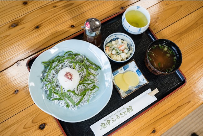 ・[廊中ふるさと館]地域特産のしらすに柚子のしぼり汁“ゆのす”をたっぷりかけていただきましょう。
