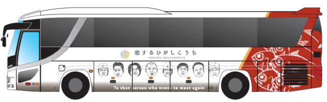 地域の人々のイラストと室戸名産の金目鯛が描かれたラッピングバスでツアー出発。訪れる街でイラストのモデルになった人と出会うとなんだか懐かしくうれしくなります。