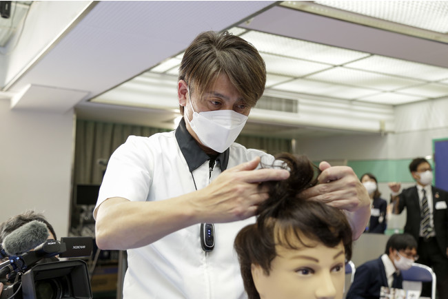 ヘアシステムはご自身で着脱を行うウィッグとは異なり、長期間着用したまま日常生活を過ごすことができる商品で、近年人気が高まっています。全国の社員が技術を磨き、大会で切磋琢磨することで、進化を続けるヘアシステムに必要とされる技術力向上を図るべく、初開催しました。「メンズ部門」「レディース部門」の制限時間は40分で、出場者が事前にカット・カールしたヘアシステムをマネキンに着け、あらかじめ指定された「課題スタイル」に合わせてスタイリングを行います。審査では競技中の「手際の良さ」・「丁寧さ」や、「課題スタイル」に忠実な仕上がりになっているかが評価のポイントとなります。「アドバイス部門」は、接客の様子を撮影した映像を大会前にオンライン審査し、大会当日に会場で優勝者の発表を行いました。