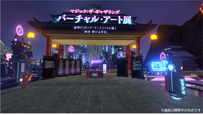 2月18日(金)の新セット「神河:輝ける世界」発売に合わせ、VRを活用した「マジック:ザ・ギャザリング バーチャル・アート展~総勢83名のアーティストたちが描く『神河:輝ける世界』~」を同日より実施。VRならではのアート鑑賞体験やゲーム性の付与により、能動的に楽しむことができるインタラクティブなアート展です。リモートでPCやVRデバイスを通して自宅から、世界中のユーザー同⼠で喋りながら展示を回るという共時体験が味わえます。新セットの舞台「ネオ神河」を模した世界観を存分に感じられる新感覚の展示会は2月24日(木)まで。「VR時代の新しいアート展を」この機会に是⾮体験しましょう。