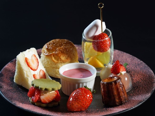 『ロイヤルストロベリーアフタヌーンティーfeat.あまりん』では、まず始めに、埼玉県産の新品種ブランドいちご「あまりん」のテイスティングをしていただきます。糖度が非常に高く、香り豊かで、程よい酸味が特徴の「あまりん」本来のおいしさを味わってから、いちごの魅力を活かしたスイーツの数々と、フレンチベースの贅沢なセイボリー(軽食)ご堪能いただきます。ティースタンド最上段には、楽しさとおいしさが詰まった本アフタヌーンティーメイン“ローズ&ゴールドのキャンディードーム”があり、お客様に割っていただくと、中から「あまりんのイスパハン」が現れます。また、セイボリーは、お食事としてもいちごを楽しんでいただくため「フォアグラのポアレ・いちごとナッツのケークサレ」など、工夫をこらしたメニューをご用意いたしました。お好きなだけお召し上がりいただけるフリーフローの紅茶と共に、ゆっくりとご堪能ください。