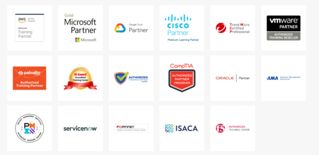 数々の有名企業から教育パートナーとして認定を受け、公式トレーニングを実施・提供しています。