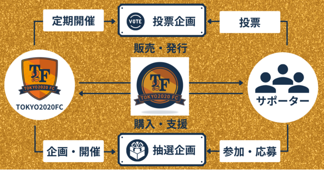 TOKYO2020 FCトークンはクラブへの応援の「しるし」や「証」の役割を果たし、また単に支援の証になるだけでなく、保有することでクラブ発の投票企画への参加や、トークン保有者限定の特典への応募ができるなど、新しい体験ができるデジタル上のアイテムです。