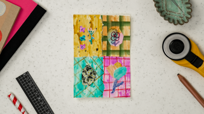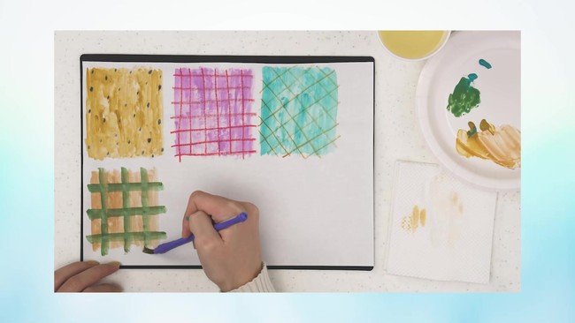 水彩絵の具をつかって4つの柄をつくります
