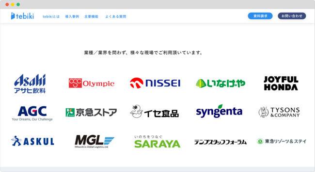 tebikiの販売開始より、インターネット広告を主軸とし、デスクレスワーカー産業の専門誌や業界紙の広告、アウトバウンドコール、オンラインセミナーなど様々なチャネルを展開しながら、販売拡大を行ってきました。