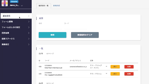 部署ごと、ブランドごと、案件ごとなど、用途別のチームを作成し、フォームの管理画面を切り替えることができます。フォームから入力された項目は、顧客情報としてデータを溜めることも可能です。