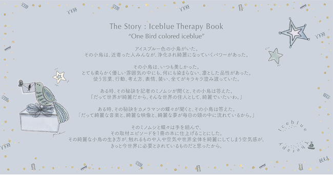 また、会員のみなさまにお送りする「Welcome Kit」は、「Iceblue Therapy Story Book」「Iceblue Therapy Guide」「Iceblue Therapy Letter Set」「Iceblue Therapy Card」の4つから構成されます。
