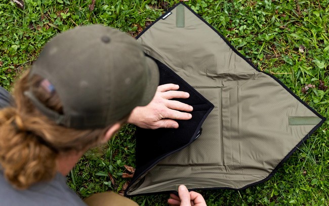 保護したいものをまとめて置き、四隅の面ファスナーを中央で合わせて、風呂敷のように包みます。