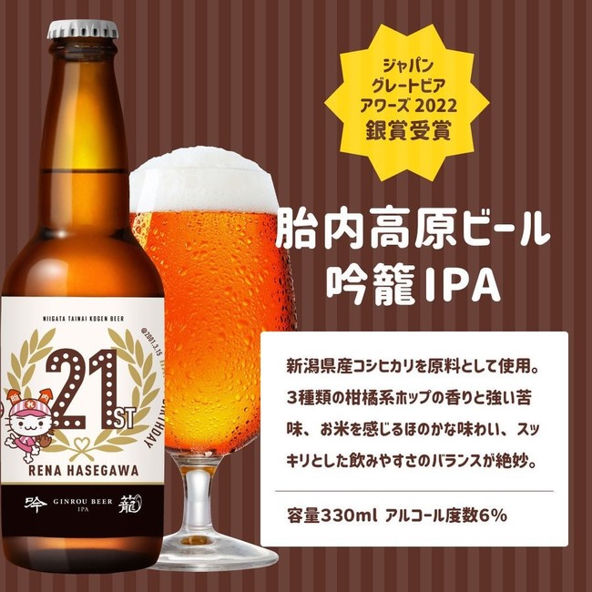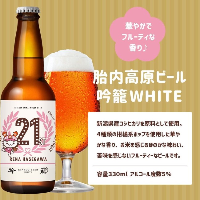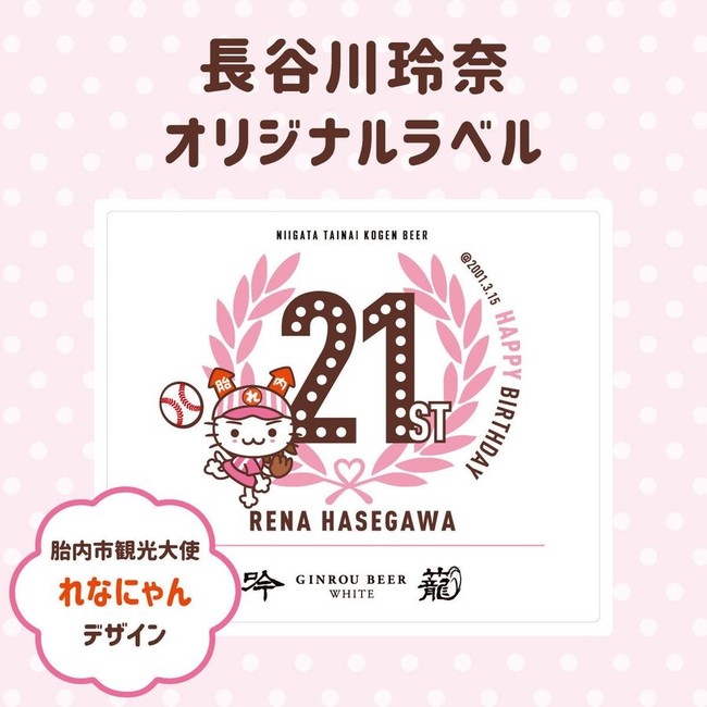 昨年度、20歳を記念して発売した[オリジナルラベル] ビール(ヴァイツェン)は、発売5時間で完売致しました。今年度は新潟県産コシヒカリを原料にした定番人気商品【吟籠】シリーズの2液種で展開しています。 2022年4月3日(日)には天王洲アイルKIWA(東京都品川区)でイベント「長谷川玲奈生誕祭2022『RENA’S 21th BIRTHDAY 2022』」も予定されており、イベント時期に向けて販売を継続中です。