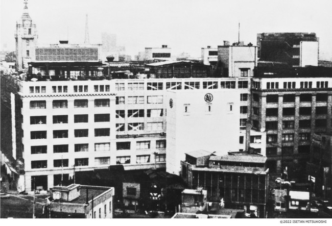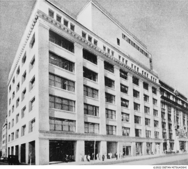 1956(昭和31)年、2年前に株式会社三越創立50周年事業の一環として着手された本店の増築工事が竣工。東館南側に、地下3階、地上7階が増築され、当時の日本最大店舗となりました。