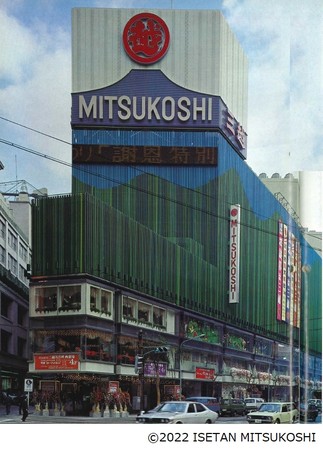 1973(昭和48)年11月13日、本店に新館が完成しました。「都会に緑を」という自然回帰への願いを込めて、青空と森をイメージしたユニークな外観の建物でした。売場、駐車場、事務館、その他施設と多角的機能を持ち、デラックスなミニ映画館、イベントステージ、大水槽など、これまでの百貨店には見られなかった新機軸が、「楽しさも提供する」百貨店の新しい方向性として注目を集めました。
