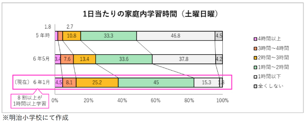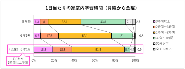 1. 自主学習の習慣が身に付き、児童の約9割が平日1時間以上の家庭学習を実施