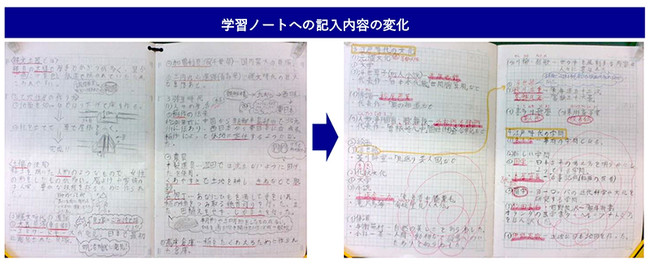 児童の学びへの向き合い方にも変化が見られました。授業の中で児童同士の話し合いや児童が自らの考えを発表する時間を増やしたり、『スタディサプリ』の講義動画を利用してさまざまな教え方があったりすることを伝えたことで、児童が学習ノートに記入する内容が、単なる板書や教員の言葉の記録から、児童自身による気付きを含むものに変化しました。学習ノートへの記入だけではなく、気付いたことを積極的に発言する児童も増えています。