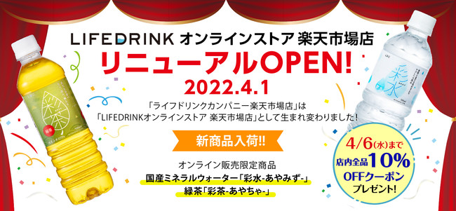 株式会社ライフドリンク カンパニー(本社:大阪府大阪市、代表取締役社長:岡野 邦昭)(以下「当社」)は、当社直営店舗「ライフドリンクカンパニー 楽天市場店」を「LIFEDRINKオンラインストア 楽天市場店」として、2022年4月1日(金)にリニューアルオープンいたしました。