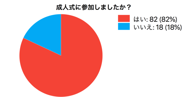 「Q1.成人式に参加しましたか?」という質問では、「はい」が82%、「いいえ」が18%という結果になりました。
