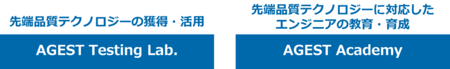 当社では、先端品質研究機関「AGEST Testing Lab.」及びエンジニア教育・育成機関「AGEST Academy」を設立いたしました。今後、国内外の業界エキスパートや大学・研究機関等との連携、最新技術に対応したQAエンジニアの育成強化等を推進し、先端品質テクノロジーエンジニアが自然と集まるような魅力的な集団を目指すと共に、研究、教育で得た先端品質技術を様々なお客様へ提供してまいります。