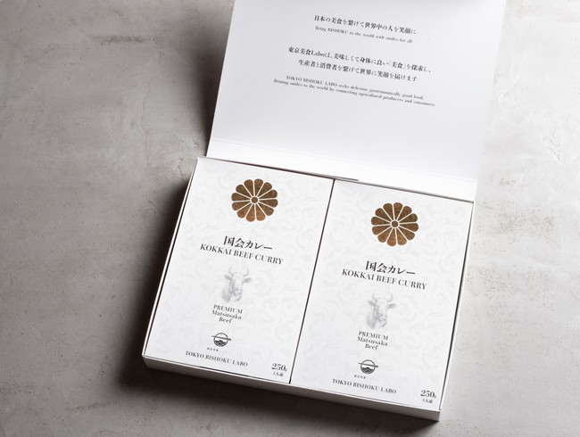 今回、営業70周年記念として衆議院内で提供している国会カレーに使用している牛肉ではなく、株式会社東京美食Laboが提供する松阪牛を使用したコラボレーション商品として「松阪牛 国会カレー」がレトルトカレーとして誕生致しました。