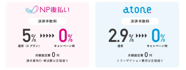 また、「NP後払い」よりも「atone」は決済手数料が低く、事業者様にもお喜びいただいております。