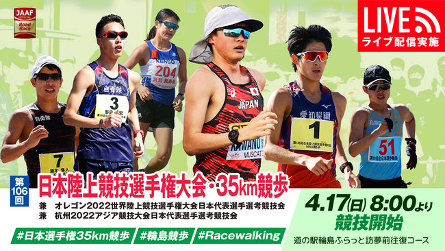 2022年4月17日(日)、「第106回日本陸上競技選手権大会・35km競歩」をライブ配信!