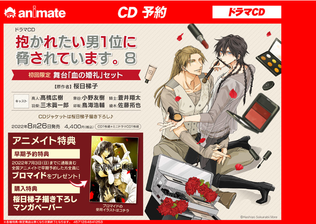ドラマCD「抱かれたい男1位に脅されています。8」初回限定 舞台「血の婚礼」セットの発売が2022年8月26日に決定!