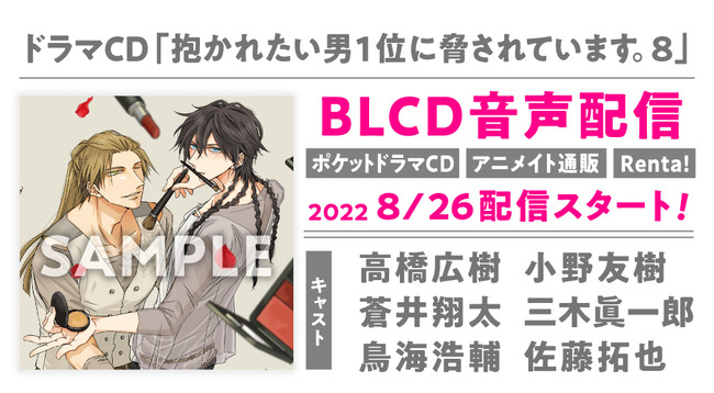 株式会社リブレ(本社:東京都新宿区、代表取締役社長:太田歳子)は、ドラマCD「抱かれたい男1位に脅されています。8」の発売を2022年8月26日に決定、本日予約受付を開始いたしました。