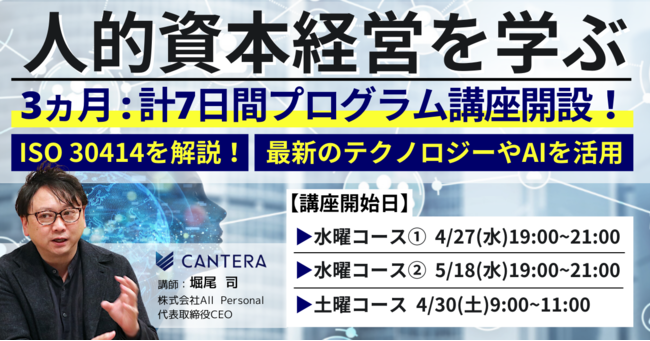 AIと最新テクノロジーを活用した人事領域に特化するプラットフォーム事業を展開する株式会社All Personal(東京都港区 代表取締役CEO 堀尾 司 以下、All Personal)は、4月下旬より、人的資本を基礎から学びつつ実績に向け準備する「人的資本の専門アカデミー」を開講致します。