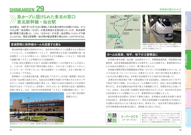 新幹線全107駅の中から特徴的な駅を取り上げ、歴史や立地の特徴、構内の様子などを詳しく解説しています。