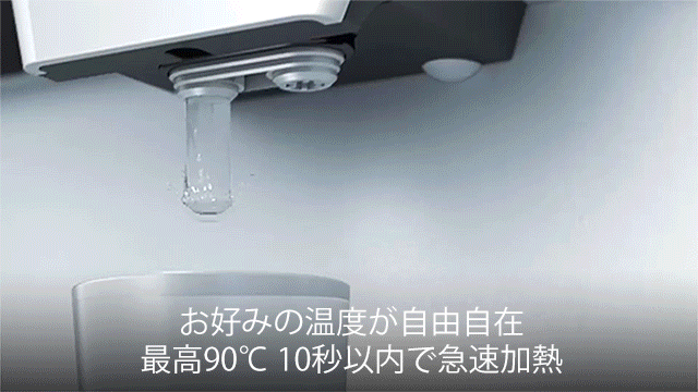 水道に接続すれば、水を入れる手間が省けます。貯水タンクは4Lで、ウォーターサーバーとしてもお使いいただけます。