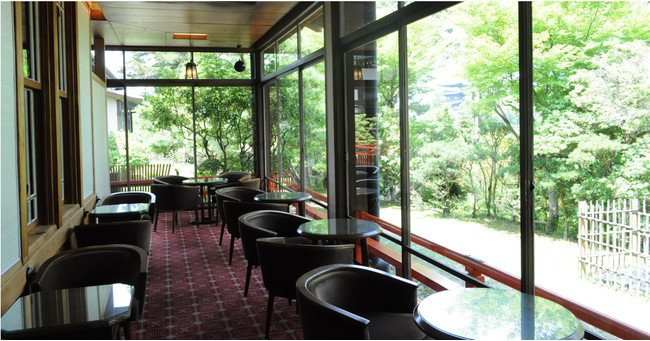 天井まで届く窓から、四季折々の風景や古都の景観を楽しむことができます。やわらかにさしこむ陽光の中で、パティシエ特製のオリジナルケーキや芳しいコーヒー、こだわりの紅茶とともにゆっくりとお寛ぎください。