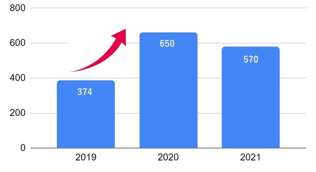 2020~2021年の売却相談数の伸び