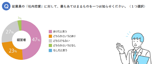 経営者の7割が従業員の社内恋愛は「アリ」と回答。