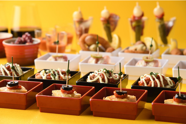 カタルーニャ地方発祥のブラバスソースを合わせたローストビーフをはじめ、アヒージョや生ハム、パフォーマンスコーナーで揚げたてのフリッターなど、豊富な種類の「タパス」を取り揃えております。