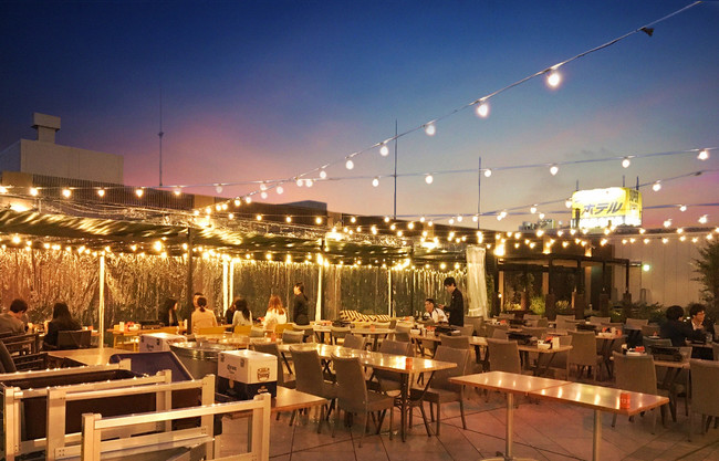 ペリエ千葉の開放的な屋上庭園に120席を完備するオープンエアなBBQテラス。屋根付き席があるので雨天でもOK!天気を気にせずお楽しみいただけます。テラスならではの開放的な空間で、食べ飲み放題BBQを満喫してください。