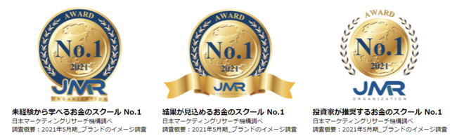 代表を務めるマネースクールは、「投資家が推奨するお金のスクール」「未経験から学べるお金のスクール」「結果が見込めるお金のスクール」の3冠を取得(JMRO 日本マーケティングリサーチ機構調べ)。