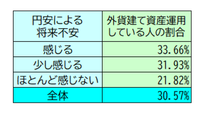 また、年配層よりも若年層、年収が低い人よりも高い人の方が外貨建ての資産運用に積極的である傾向が現れました。