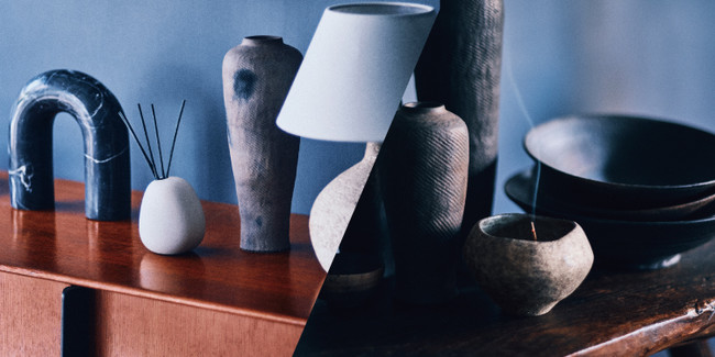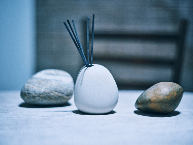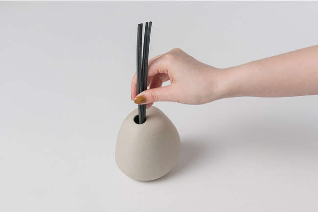 アシンメトリーなフォルム、粗野だけど滑らかでマットな土の質感が、見た目も手触りも優しさや穏やかさを表現し、居心地の良いお部屋に、香りとともに寄り添います。