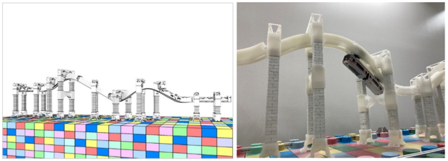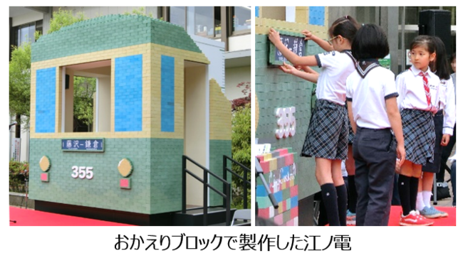 花王は、回収した使用済みつめかえパックを再びつめかえパックへ戻す水平リサイクルへの研究を本格的に進めながら、本プロジェクトのコンセプトである「プラスチック地捨地消」を具現化する地域循環モデルの確立をめざします。また、あわせて発足する、「駅」を舞台とした「SHONAN FAB STATION PROJECT」では、プラスチックリサイクルをテーマとして6月1日より湘南モノレール湘南江の島駅に展示するモノレール模型sasumo(サスティナブルモノレール)[SOLIZE株式会社提供]の展示台に、約2,400個の「おかえりブロック」が使用されています。