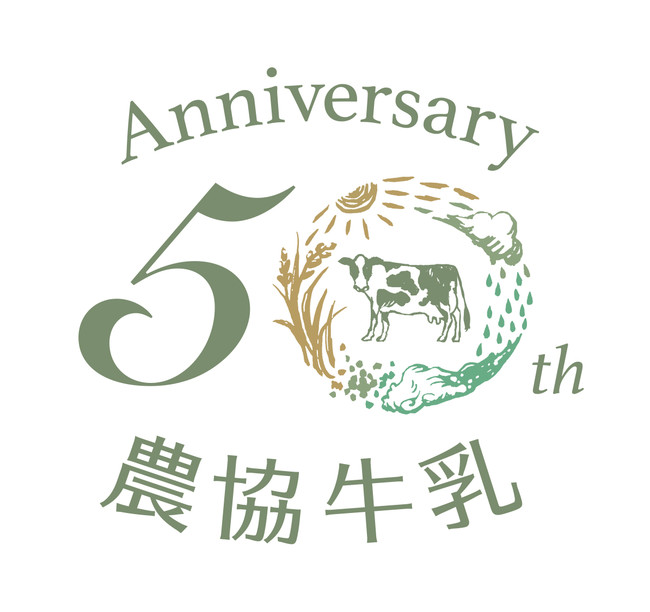 今回、パッケージなどにも表記する50周年記念のロゴマークには「大地と生命の恵みの循環」をテーマにとした輪のデザインを施しました。輪のデザインを50の「0(ゼロ)」部分に見立て、農協牛乳50年の歴史の中で多くの人々と積み重ねてきた「つながりの輪」や「感謝の想い」を込め、優しくあたたかみのある色合いで安全安心な品質を表現しています。