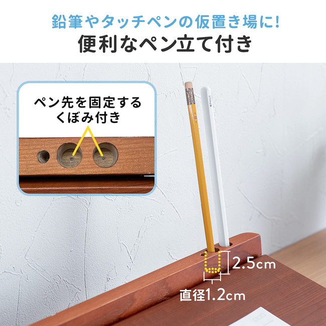 天板上部にはペンやタッチペンなどを立てられる構造です。