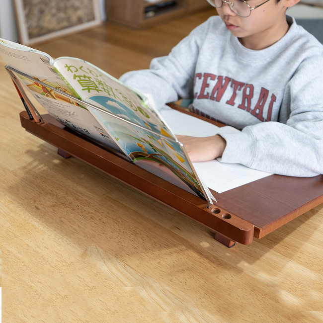 学習机やダイニングテーブル、リビングテーブルなどに置いて使うことで学習時の姿勢を改善し、体への負担の軽減と学習環境を整えます。
