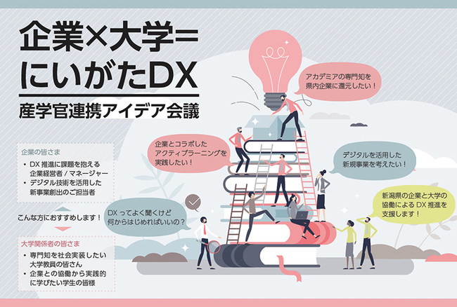 新潟県では、「知の拠点」である県内大学の活用を促進し、県内企業や地域の課題解決・人づくりを進めるため、産学のニーズ・シーズの見える化を図るとともに、産学官連携のポイントや課題の洗い出しを行う「産学官連携促進モデル事業」を実施します。