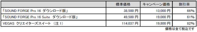 また、発売を記念して、同日より6月28日(火)までの期間、専用ページ上では「TheChance~音を極めるSOUND FORGE Pro 16割引フェア」を開催いたします。本シリーズに映像制作、作曲、サウンド編集が全てできる「VEGAS クリエイターズスイート」を加え、割引価格で提供します。