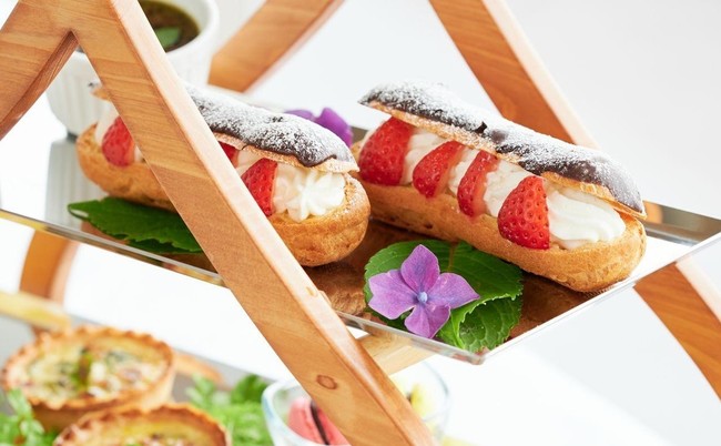 錦江湾を一望におさめる当ホテルのフレンチレストラン「Céleste」(セレステ)にて、若葉の初々しさとみずみずしく透き通った木々の新緑を感じながら、いつもよりゆっくりとティータイムを過ごしたいこの季節にぴったりの初夏のアフタヌーンティーをご用意します。